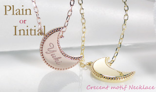 K10YG/WG/PG クレセント モチーフ ネックレス ペンダント【イニシャル入れ対応】