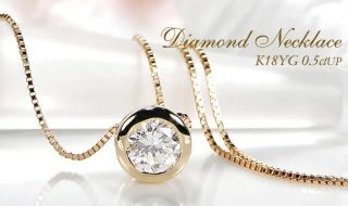 K18YG【0.5ctUP】フクリン留め 一粒 ダイヤモンド ネックレス【無色透明】