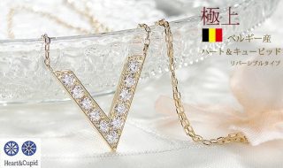 Pt950 ハートアンドキューピッド ダイヤモンド V字 ネックレス リバーシブルタイプ ヴィ【0.5ct】鑑別カード・スコープ付