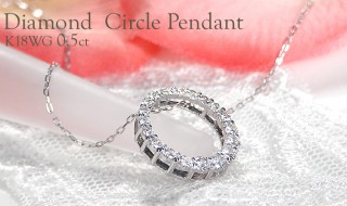 K18WG【0.5ct】サークル ダイヤモンド ネックレス【送料無料】 ダイヤネックレス ペンダント ゴールド ダイヤモンドネックレス 丸 まる k18 18金 品質保証書 クリスマス X’mas プレゼント 可愛い 代引手数料無料 ラッピング無料