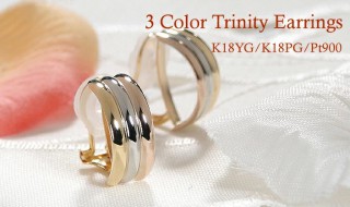 Pt900/K18YG/K18PG スリーカラー トリニティフープ クリップイヤリング シリコン クリップ式
