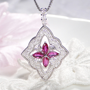 ☆女性のお守り、真っ赤なルビーのひし形モチーフネックレス。