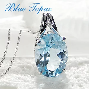 材質 K18ホワイトゴールド 石 天然ブルートパーズ オーバルカット 約 12X16mm 1p 天然ダイヤモンド 1p 約 0.01ct 最大幅 約 23.0×12.0mm MEMO K18WG 0.24mm 角アズキチェーン 40cm(アジャスターカン付)
