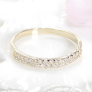 ☆30個、トータル0.2ctの上質ダイヤモンドを、ゴージャス感あるイエローゴールドのアームにセットしたパヴェリング!